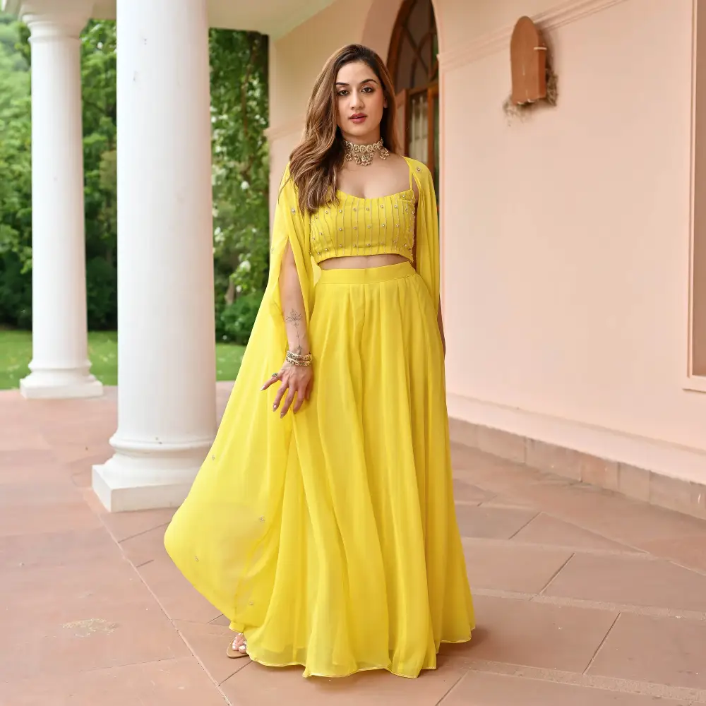 Yellow Timeless Georgette Cape Pants Set